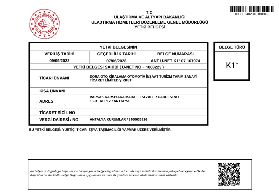 DORA OTO KİRALAMA OTOMOTİV İNŞ.TUR.TAR.SAN.TİC.LTD.ŞTİ